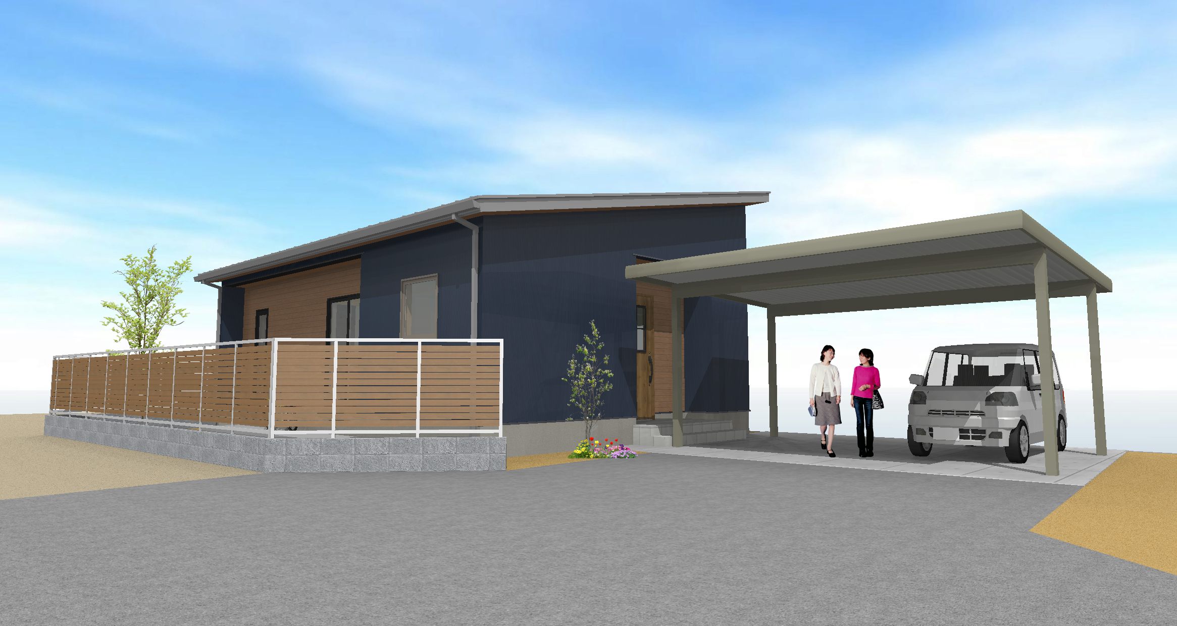 駐車スペースを確保しながら、庭のあるゆとりのある暮らしを実現。