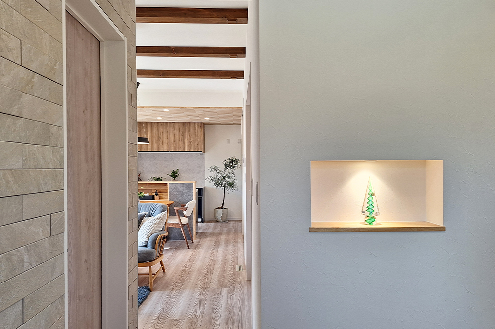 玄関に一歩入ると、やわらかなあたたかさに包まれる空間。