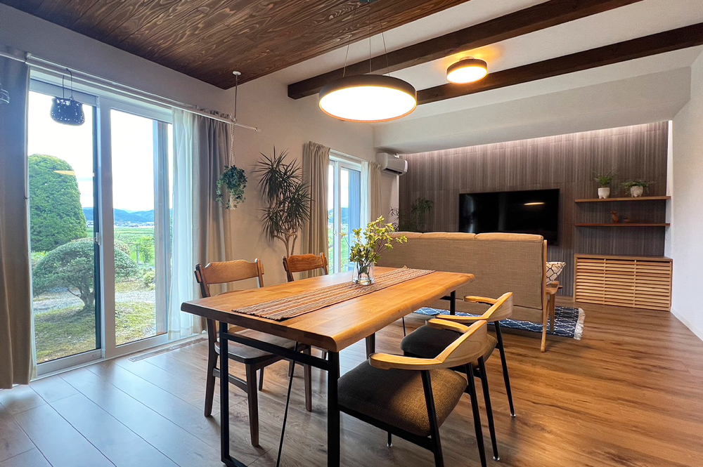 リビングから広がる美しい景観と、一年を通して快適に過ごせる日当たりを丁寧に計算した設計が魅力です。
