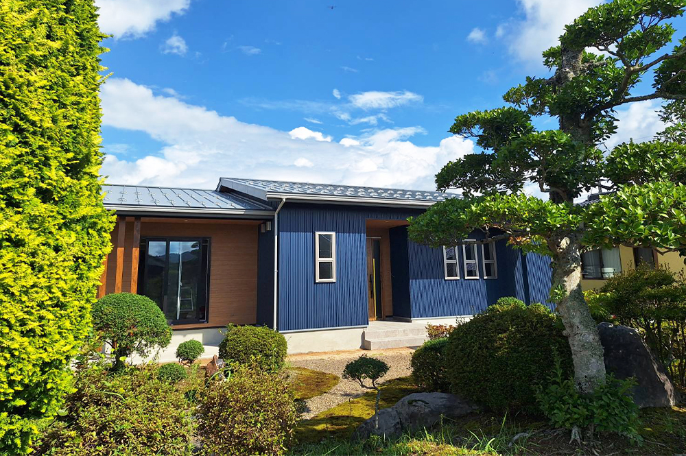 外観には、ガルバリウム鋼板のネイビーカラーを採用。